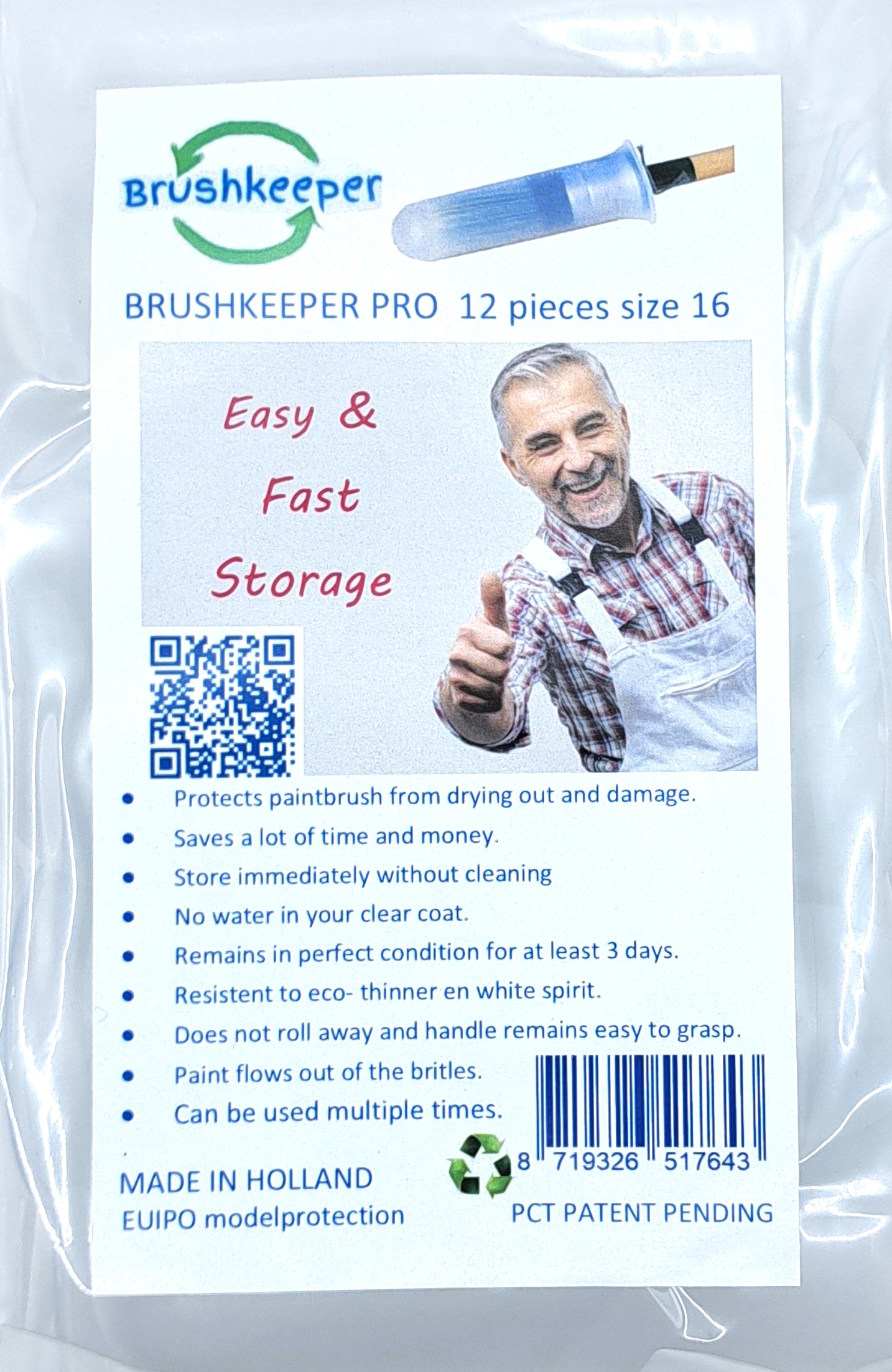 Met de Brushkeeper berg je je kwast veilig op tijdens en na je schilderklus. Je hoeft niet schoon te maken, folie te gebruiken of verf te verspilllen. De kwast blijft tot 5 dagen bruikbaar zonder vloeistof, en met water of terpentine zelfs maanden en jaren. Het systeem reinigt de kwast vanzelf en met de professionele Eco-brush in combinatie schilder je ook nog strak en streeploos. Kies voor Brushkeeper en bespaar tijd, geld en water.