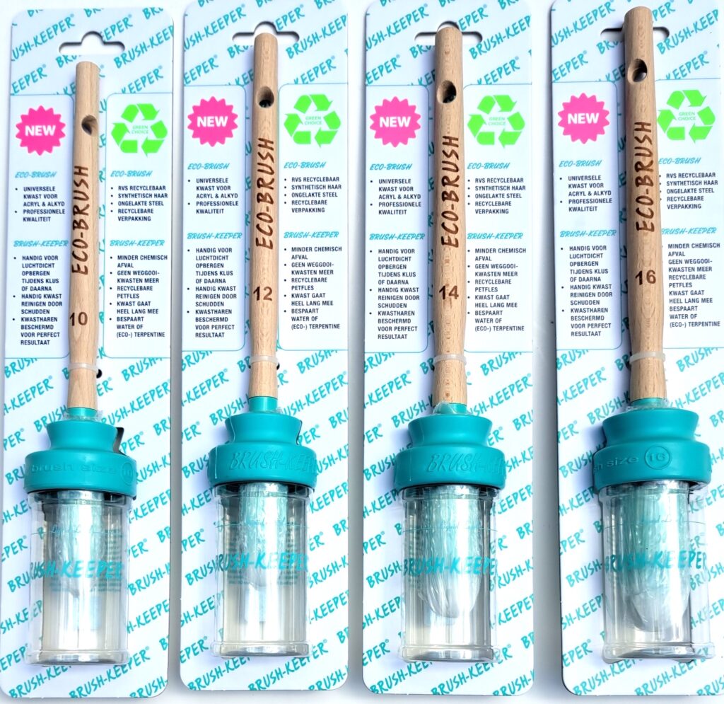 De Brushkeeper beschermt je kwast tegen uitdrogen en beschadiging, en zorgt ervoor dat de kwast zeer lang meegaat. Bijna niemand “slijt” een kwast. De meeste kwasten worden weggegooid omdat ze zijn uitgedroogd. Daarom worden elk jaar miljoenen kwasten onnodig weggegooid, terwijl ze, bij goed onderhoud, nog vele jaren gebruikt hadden kunnen worden. Dit is des te belangrijker omdat ze vaak in Azië worden geproduceerd en al een enorme reis hebben afgelegd voordat ze worden gebruikt, waardoor tonnen CO2 onnodig in het milieu worden uitgestoten. Dit kan eenvoudig worden voorkomen met de Brushkeeper. Alles is handgemaakt in Nederland met een zeer kleine CO2-voetafdruk.